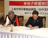 リゾートトラストは、お年寄りや障がい者にも万博を楽しんで頂くため、上海市に車椅子を500台、NPO法人日中友好支援センターを通じて寄贈しました。